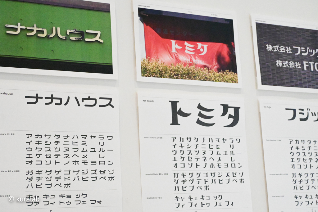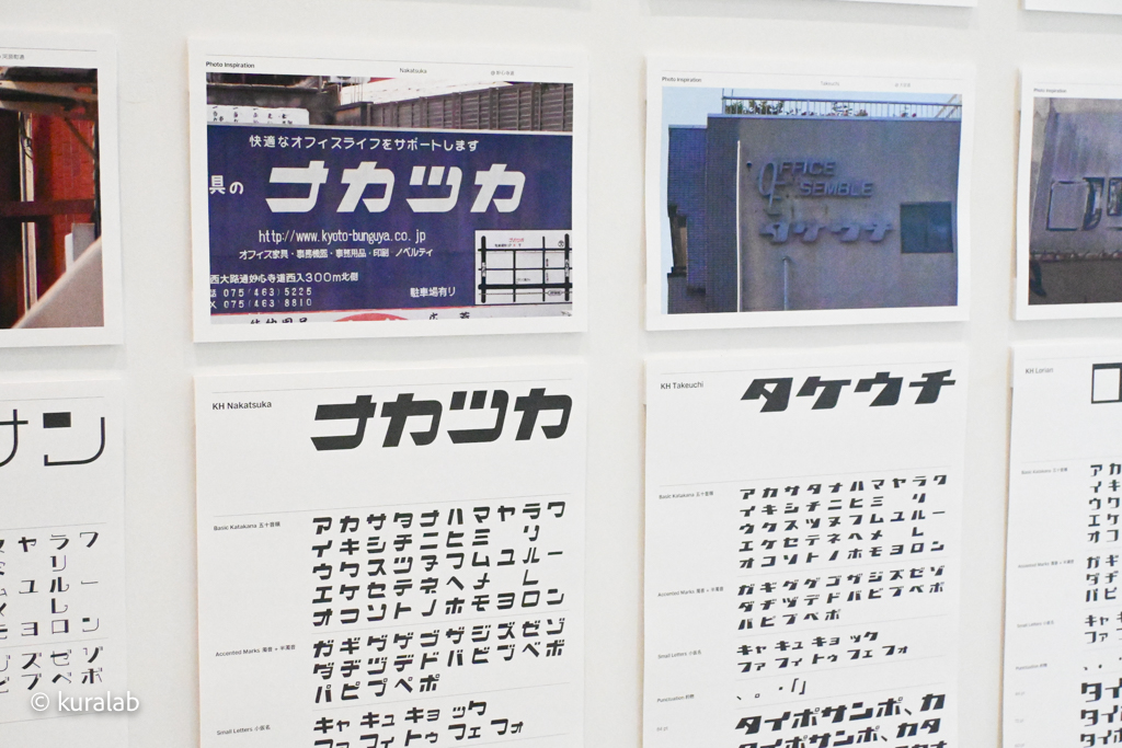 そして、それらの中から選んだ文字の形状をもとに、新たなカタカナフォントをデザインしています。都市に散在する無名の文字たちが、彼の手で丁寧に再解釈され、新たな命を与えられているのです。